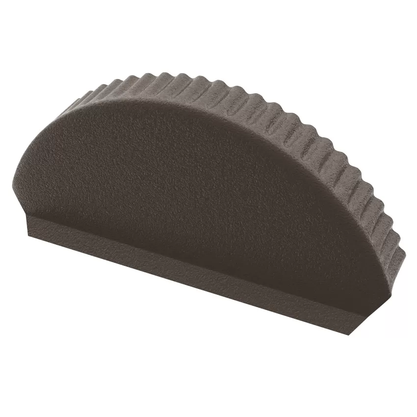 Заглушка торцевая к коньку полукруглому. Данный элемент монтируется на торцы полукруглого конька. Помимо эстетической функции, защищает подкровельное пространство от возможного попадания грязи и влаги.