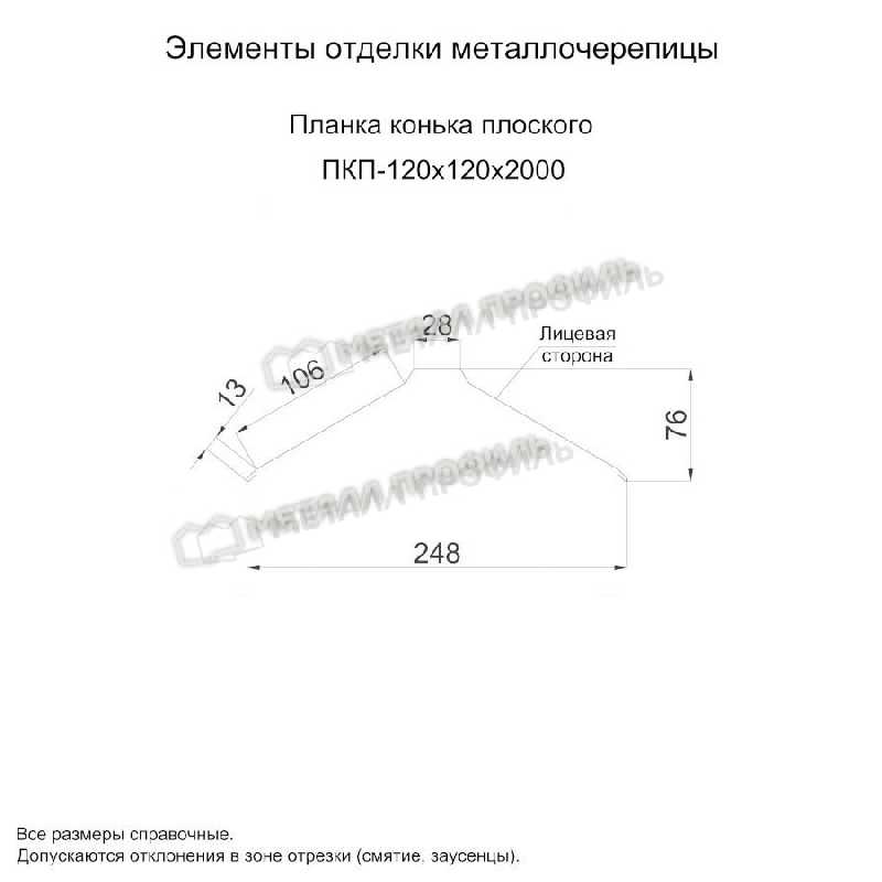 Планка конька плоского 120х120х2000 NormanMP (ПЭ-01-7004-0.5)