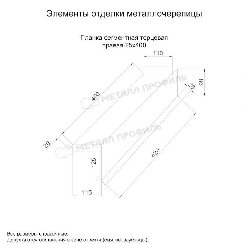 Планка сегментная торцевая правая 400 мм NormanMP (ПЭ-01-5005-0.5)