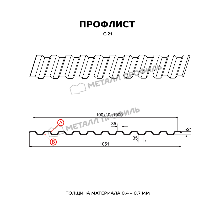 Профиль С-21 обладает прочной структурой и высокой устойчивостью к внешним воздействиям, что делает его идеальным выбором для использования на крышах, фасадах и заборах.