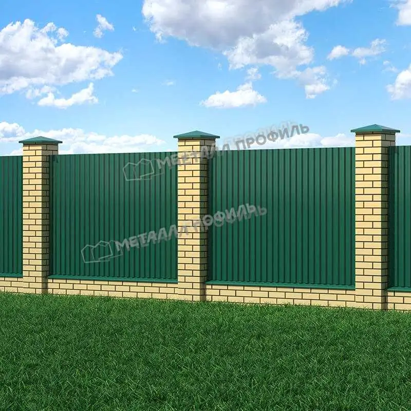 Цвет профиля - зеленый мох (RAL 6005), который придает зданию эстетичный и современный вид. Он также обладает защитными свойствами, предотвращая коррозию и повреждения от влаги и ультрафиолетовых лучей.