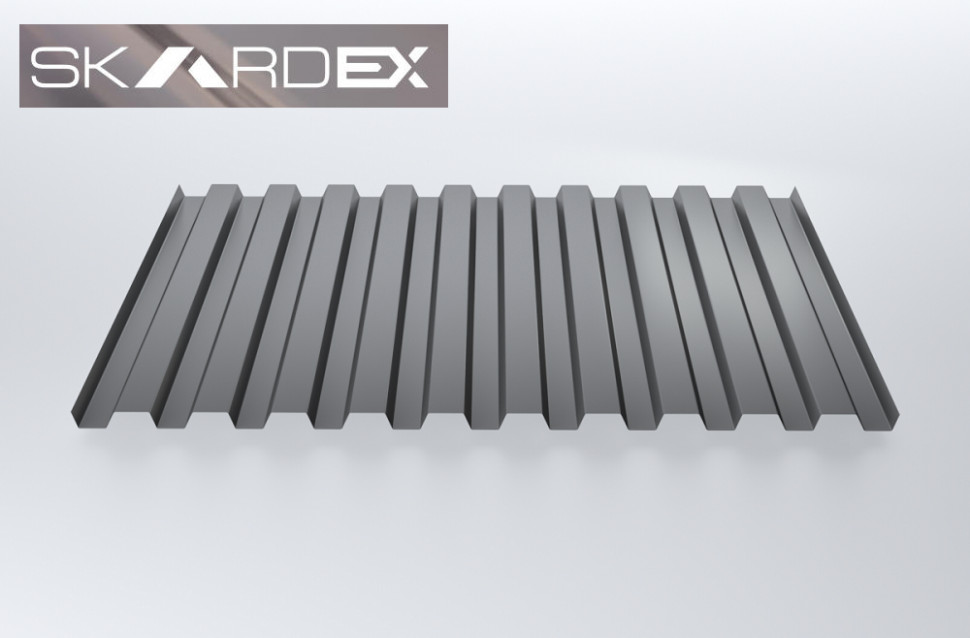 Профнастил SteelX C21 SKARDEX 0,5 RAL 7024 Серый - это качественный материал для кровли, который отлично подойдет для защиты вашего дома от неблагоприятных погодных условий. Серый цвет RAL 7024 придаст вашей крыше элегантный и современный вид.