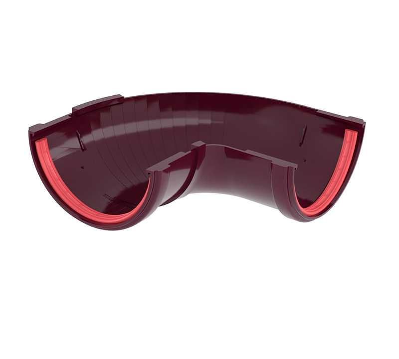 Угол желоба составной 90-150 град. ПВХ Grand Line бордо (RAL 3005)